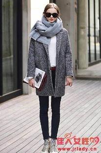 1. 选择修身款式的深灰色上衣,可以更好地凸显身材线条。